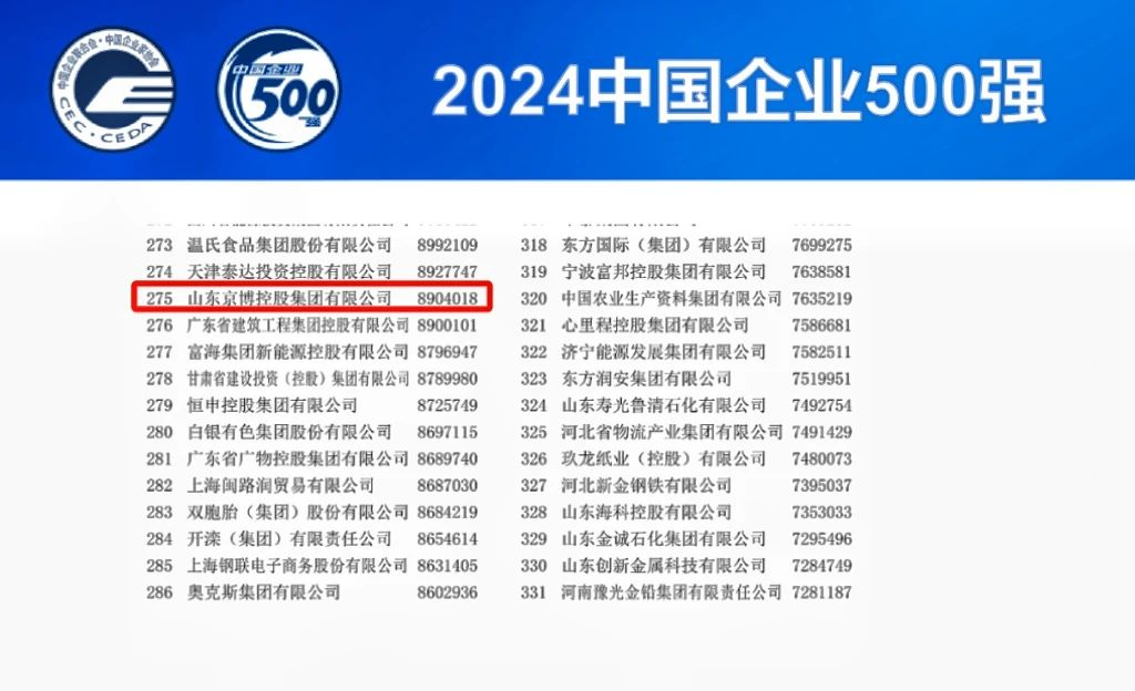 目前位列中国企业500强第275位、中国民营企业500强第98位。